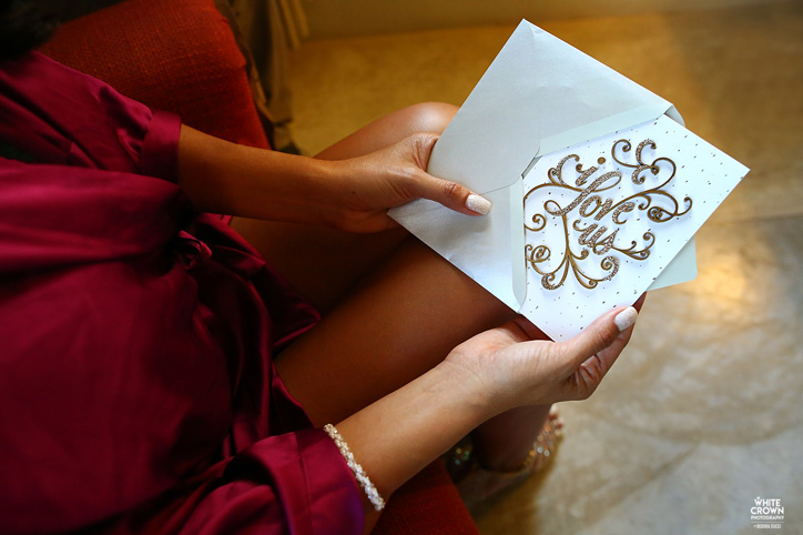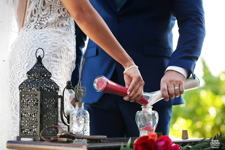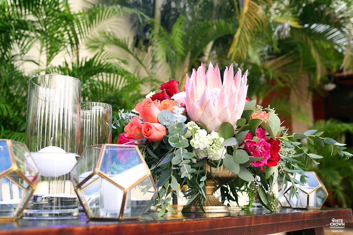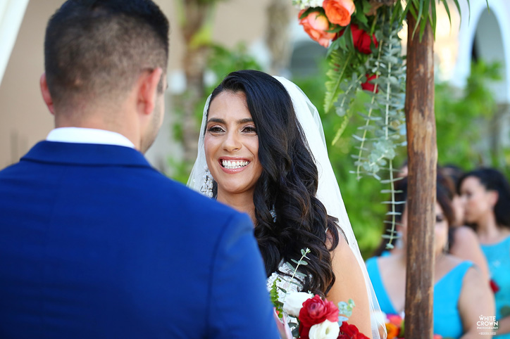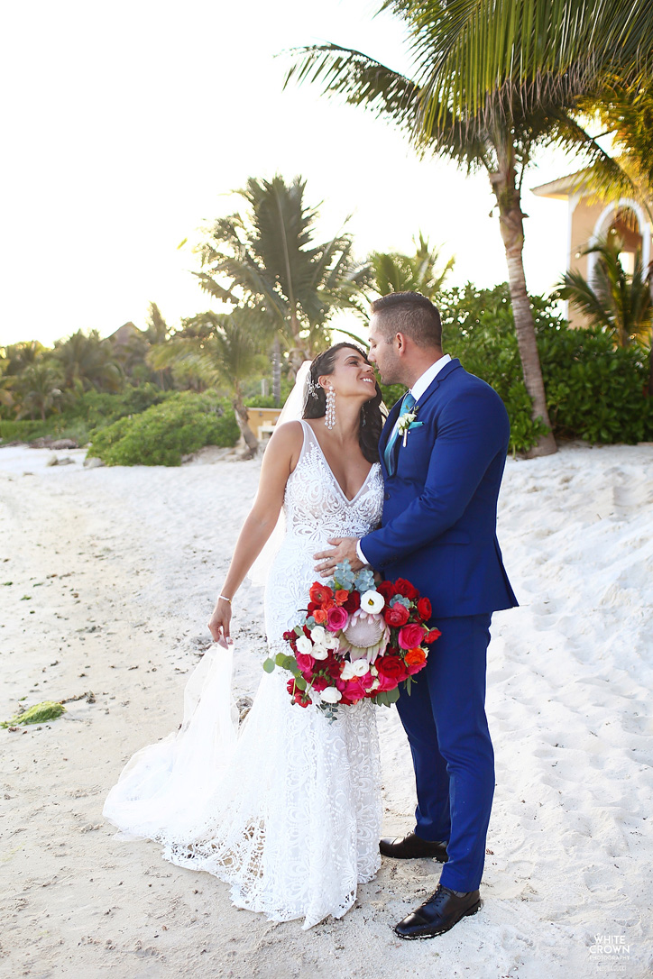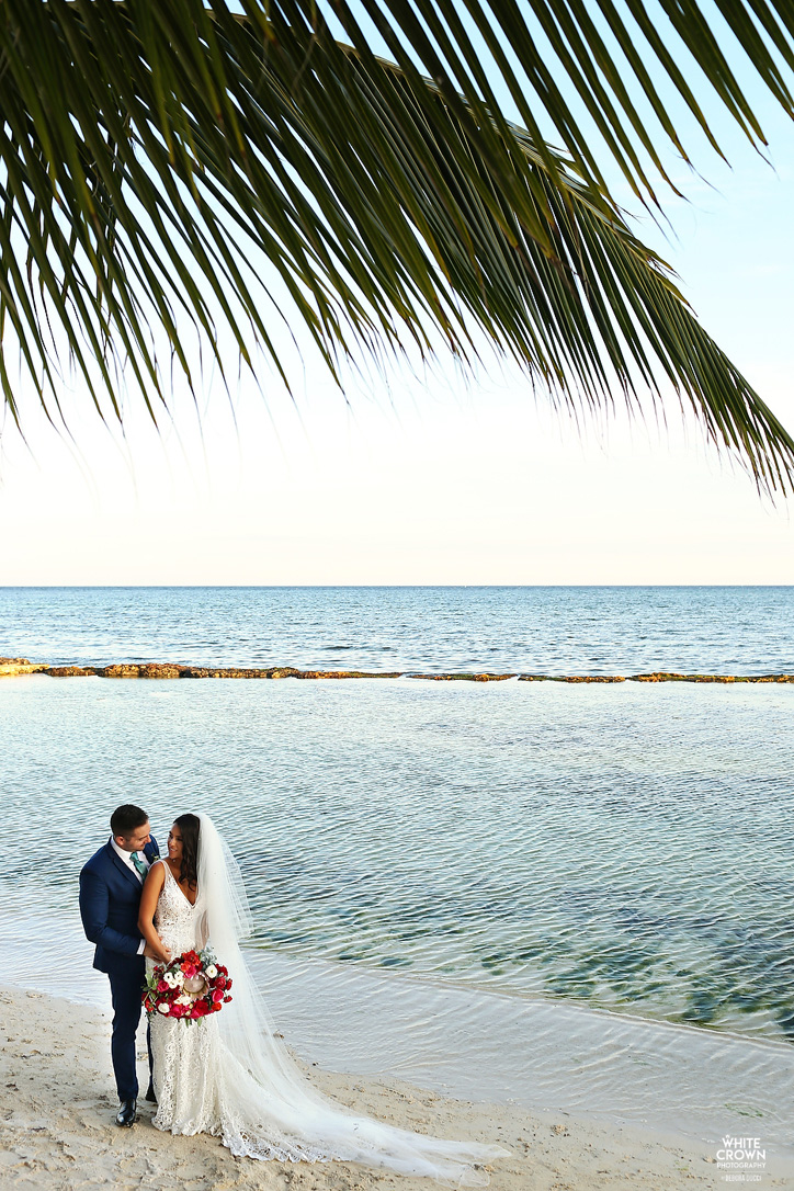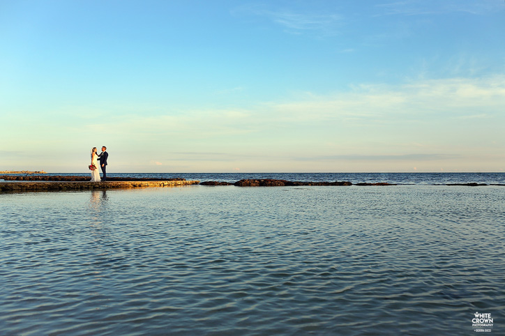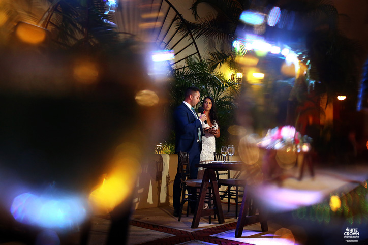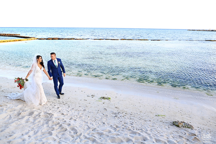 After a touching wedding ceremony complete with a few traditional touches, there wasn’t a dry eye in the house. Each and every one of their closest friends and family were bursting with pride as they watched this happy couple profess their love for one another. After the vows had been said and the rings had been placed, the wedding party retired to the pool area to enjoy a cocktail or two, while the newlyweds joined the fantastically creative Deborah Ducci from White Crown Photography for a sunset photoshoot by the sea.