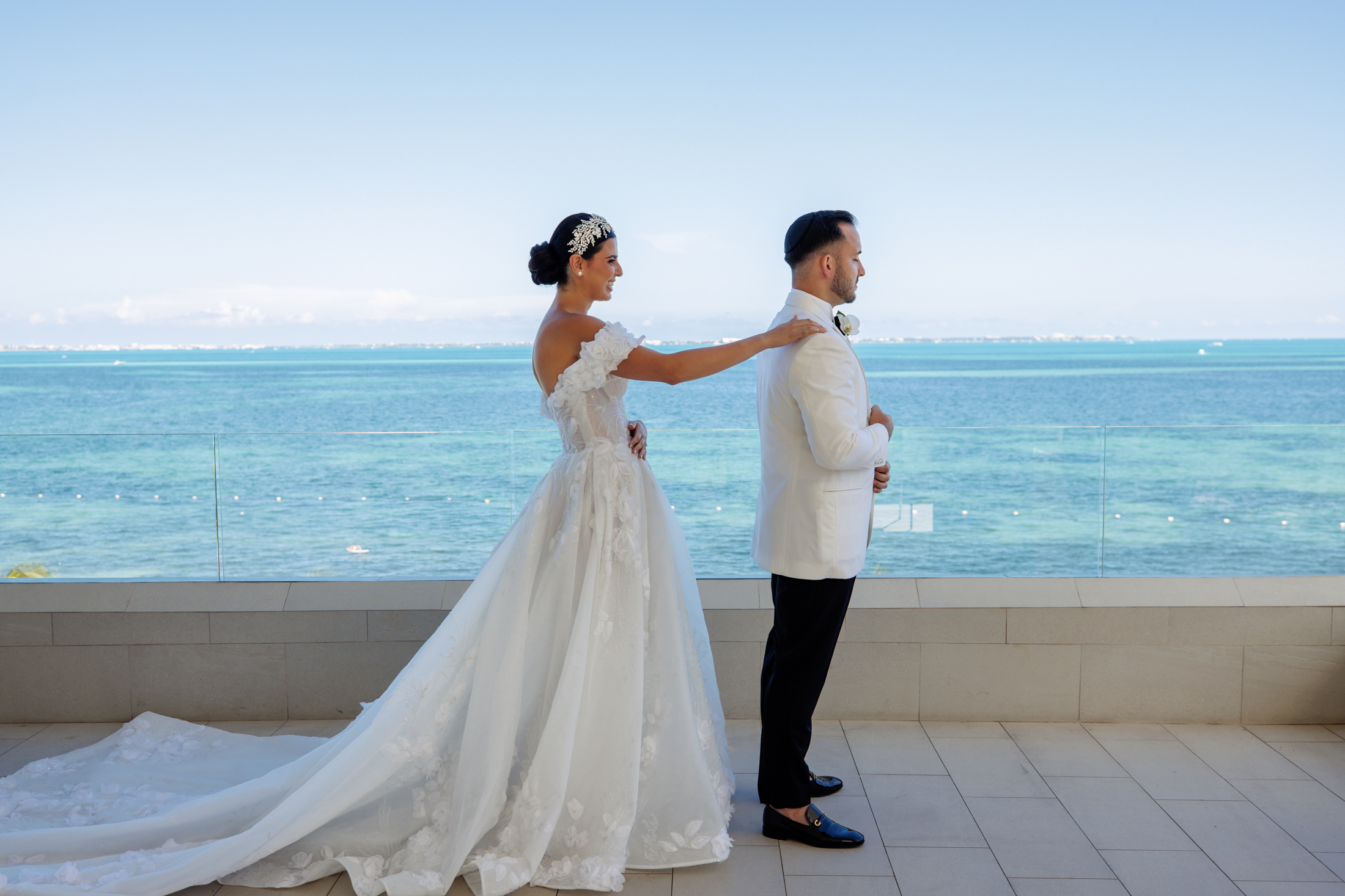 If you are looking for a glamorous and cosmopolitan destination wedding, you might want to check out the stunning celebration of Sabrina and Michael at the Garza Blanca Resort & Spa Cancun. This couple blended their Hebrew and American backgrounds in a stylish and elegant way, with the help of Mango Weddings & Events, a luxury wedding planning company in the Riviera Maya, Mexico. We distilled the highlights of this wedding’s distinctive charm.