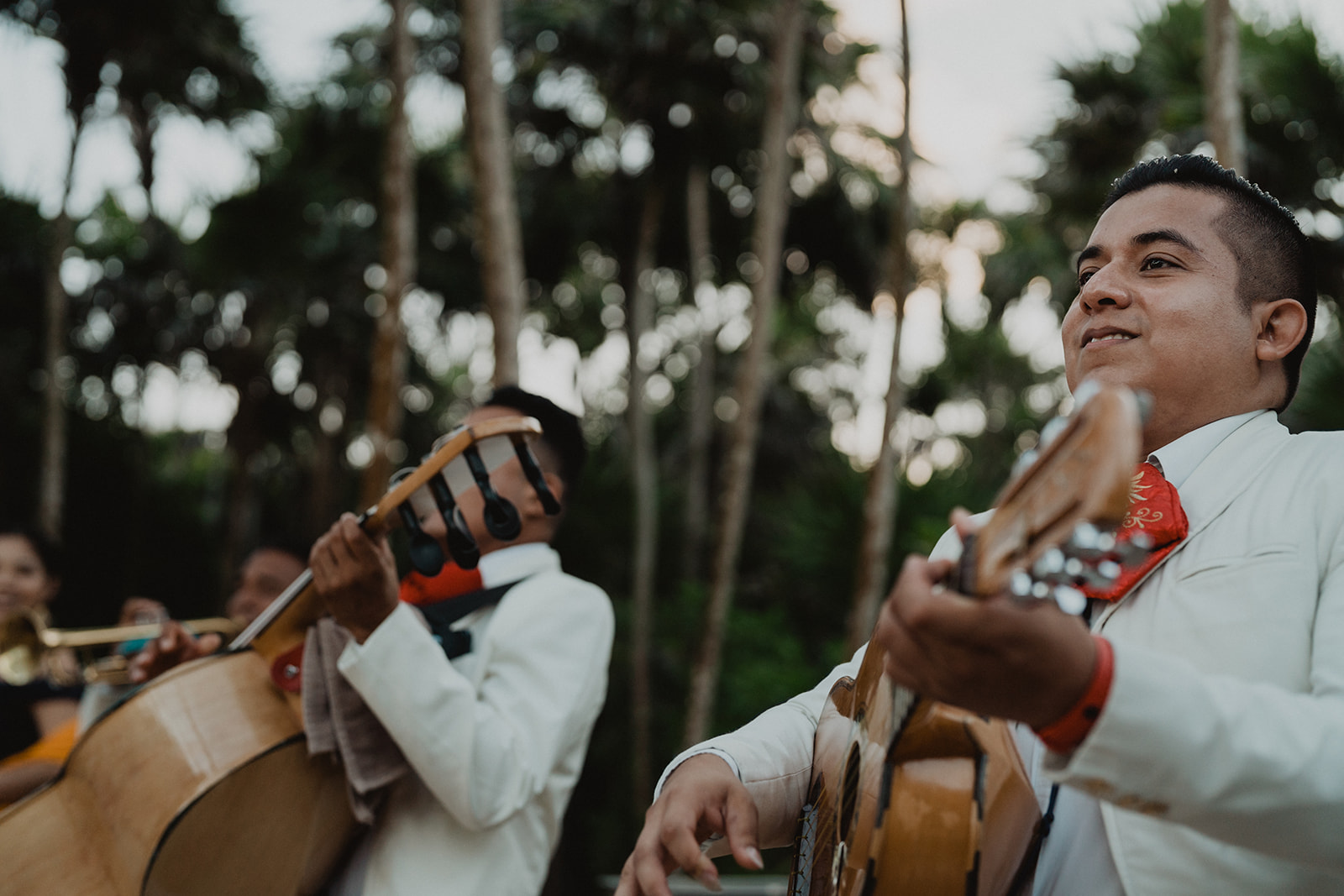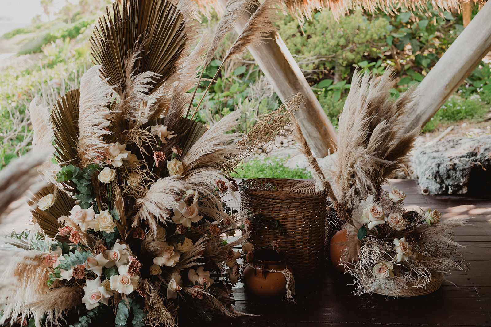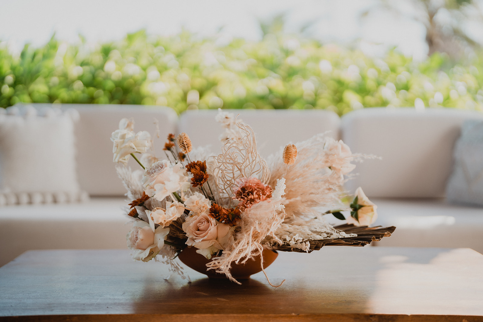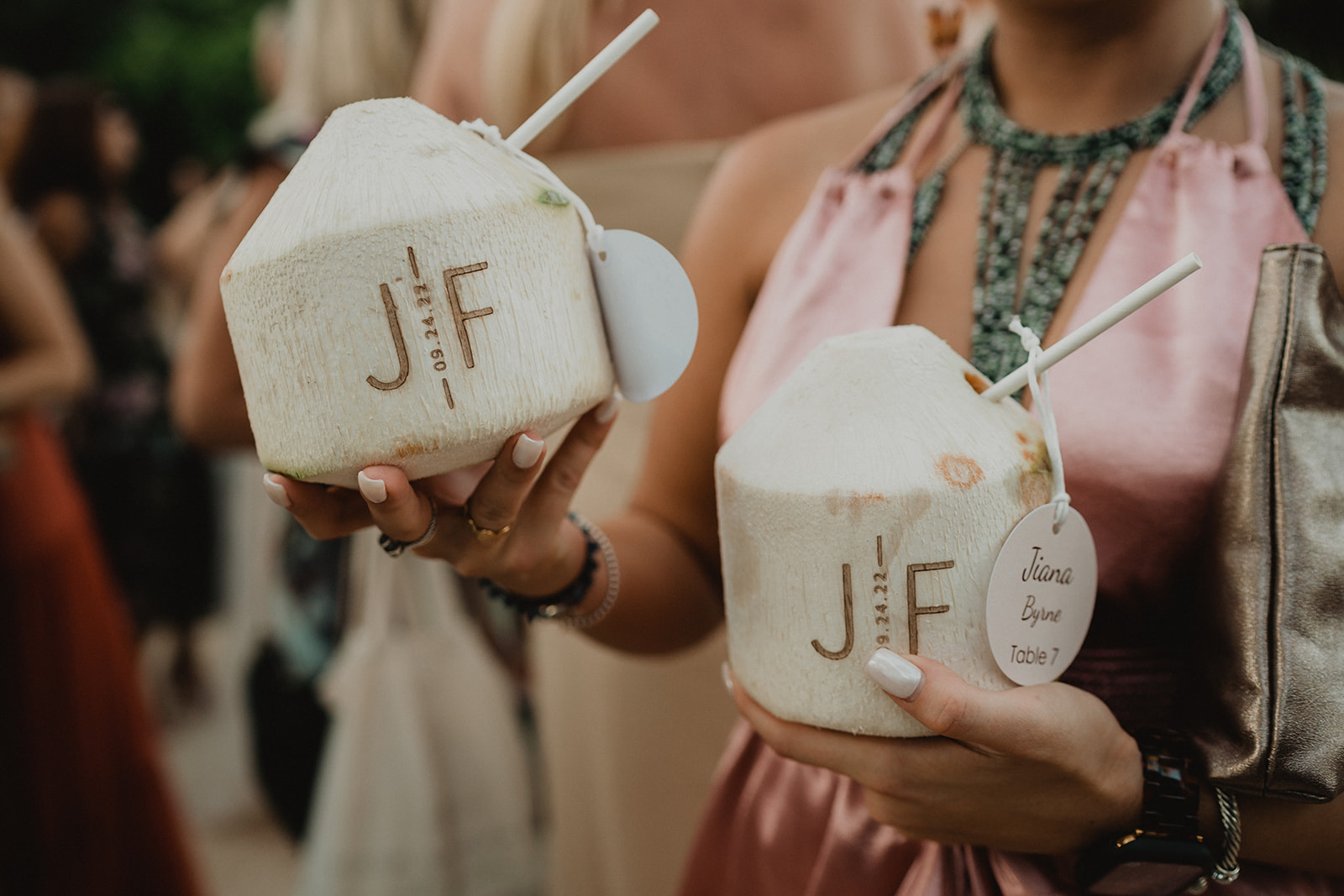On their wedding day, they enjoyed a private yoga class. They were already relaxed for their day though, trusting us to take care of everything. Some highlights from their day include the coconut seating chart, the couple jumping into the pool, the fact that their wedding was barefoot, the mariachis we had play after the ceremony, and the bride-to-be sticking her finger in her fiance’s ear for the first look.