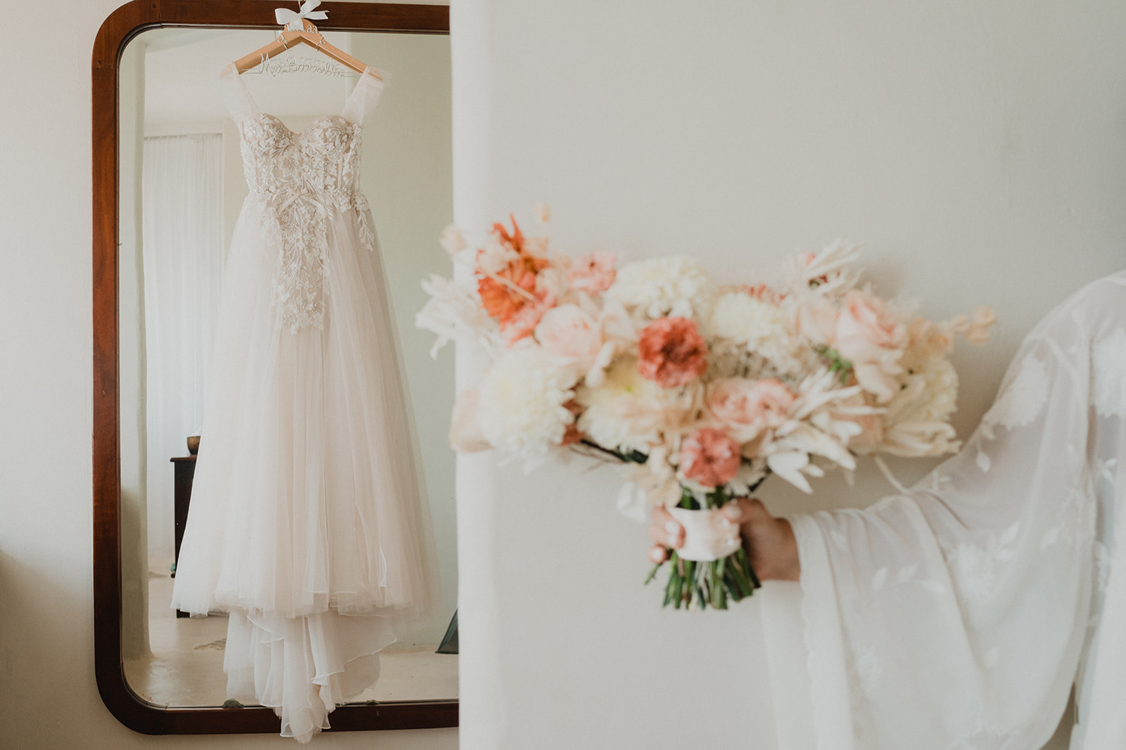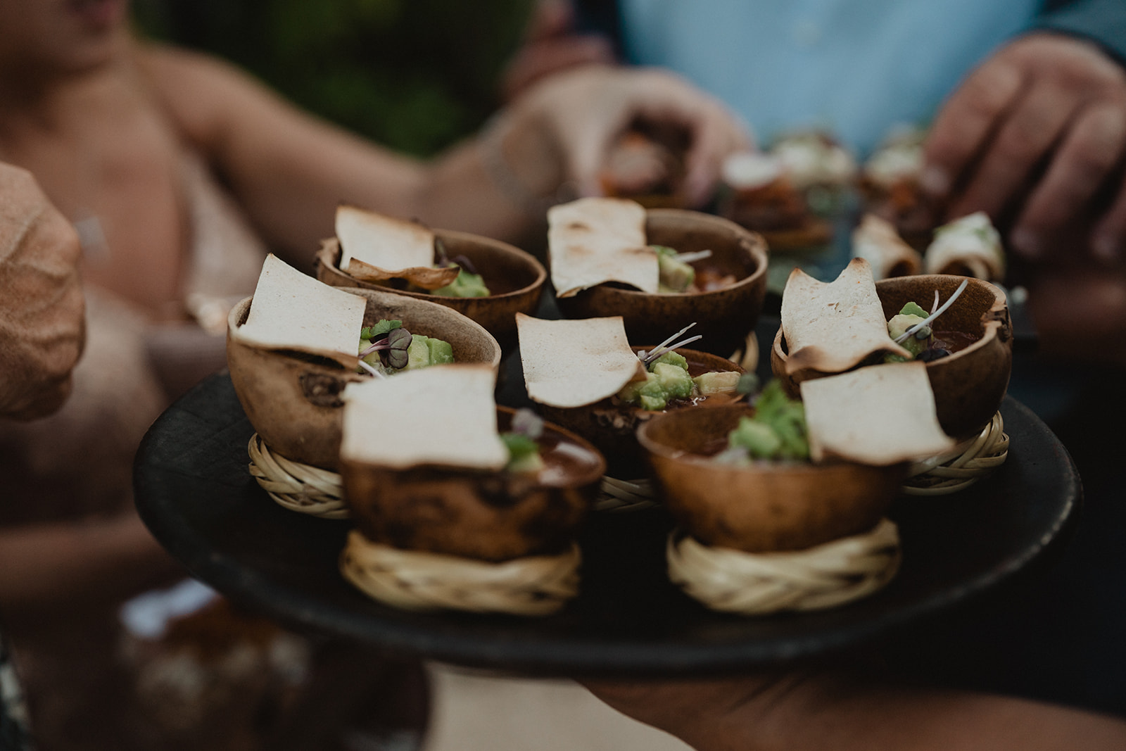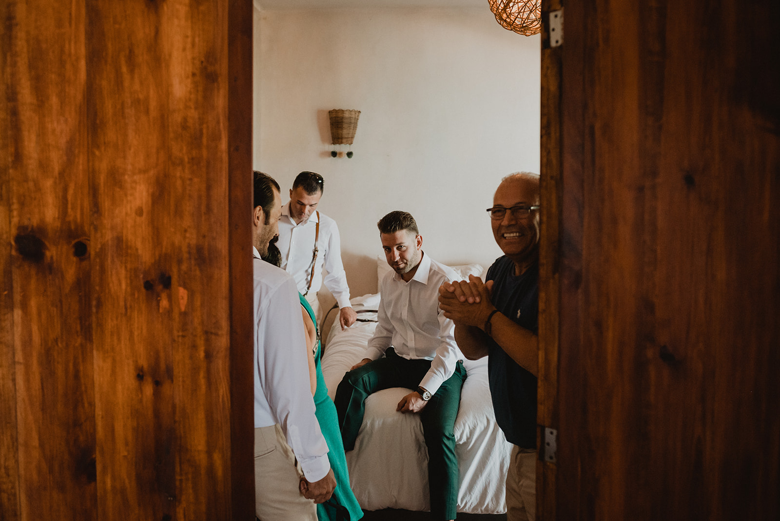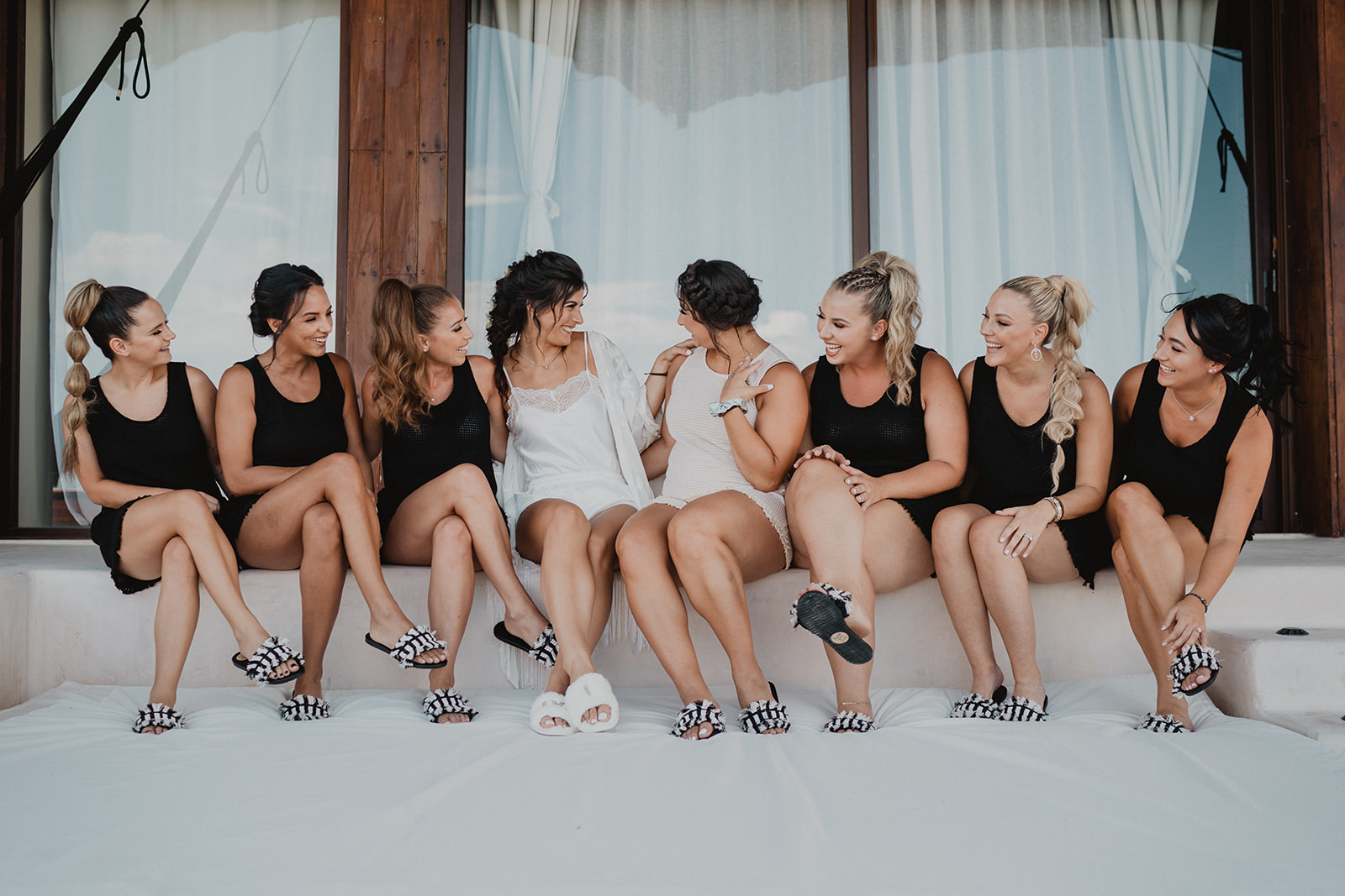 On their wedding day, they enjoyed a private yoga class. They were already relaxed for their day though, trusting us to take care of everything. Some highlights from their day include the coconut seating chart, the couple jumping into the pool, the fact that their wedding was barefoot, the mariachis we had play after the ceremony, and the bride-to-be sticking her finger in her fiance’s ear for the first look.