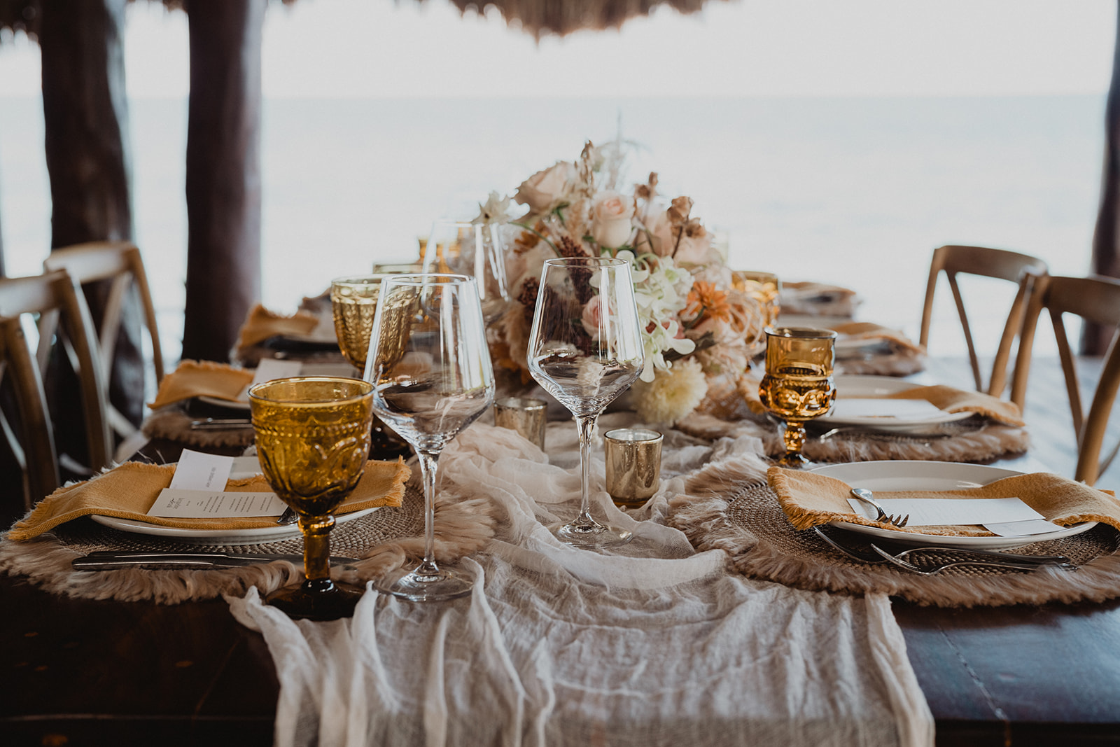 For their Papaya Playa Project wedding, we planned a boat tour and welcome dinner for the couple and their guests to enjoy. The boat tour took them across the clear, emerald waters of the Caribbean, while the welcome dinner featured authentic Mexican cuisine.